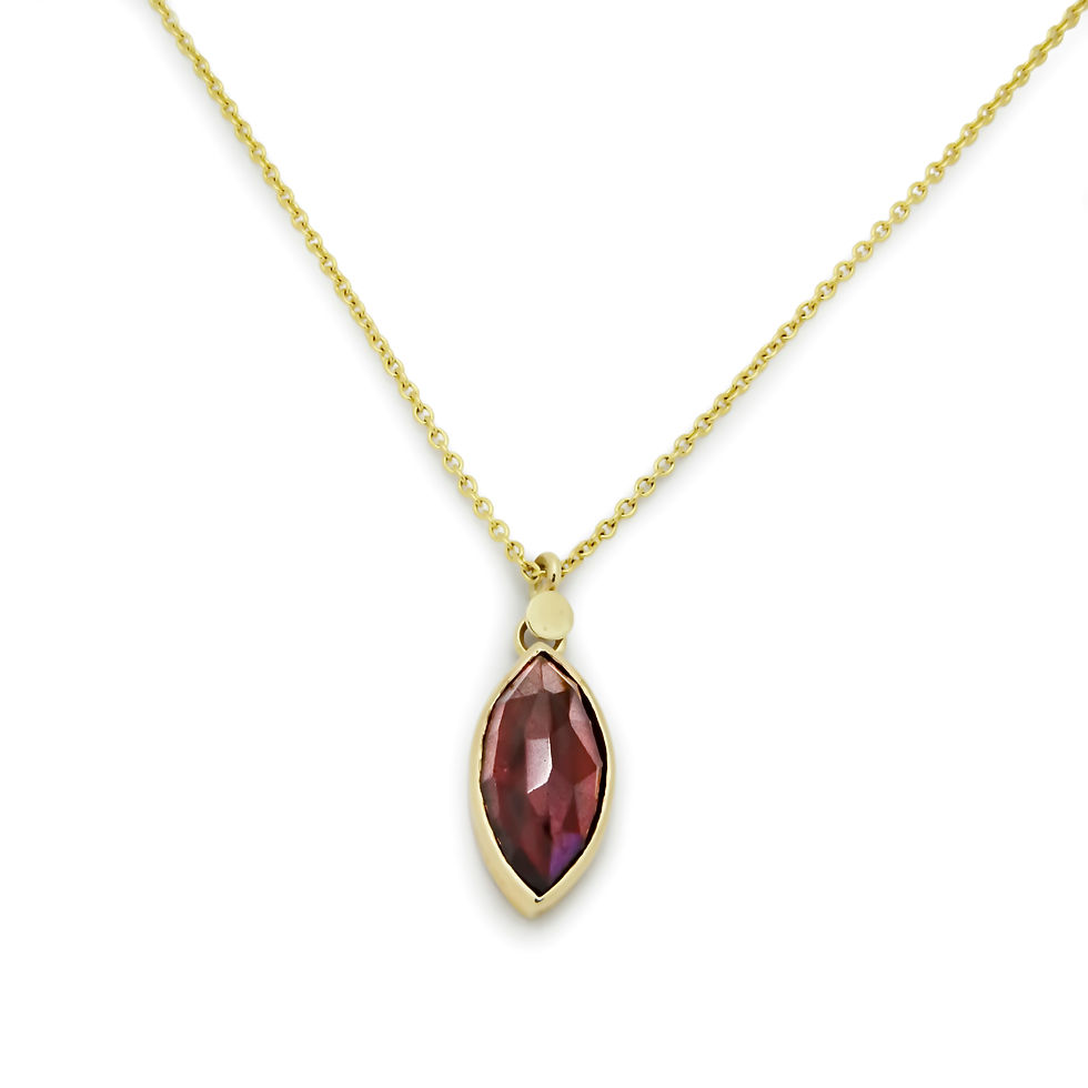 שרשרת זהב עם תליון אובלי ועלה מוטבע