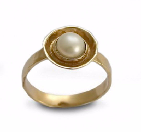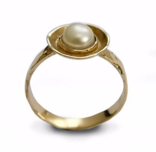 טבעת זהב מלכותית עם אבן סגולה ופנינים